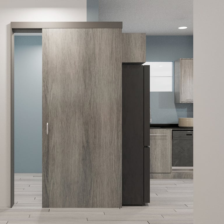 Ash-colored wood doors, which provide definition to the spaces. Wooden doors help to create warm, comfortable and cozy spaces. They are resistant to atmospheric changes and have guaranteed durability.
